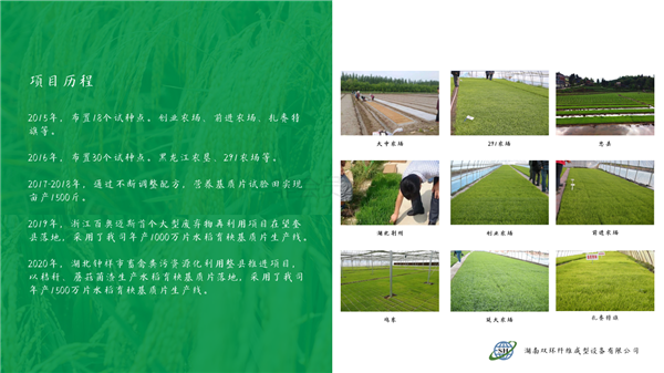 掃一掃咨詢微信客服我司2012年應(yīng)黑龍江某企業(yè)誠(chéng)邀,開發(fā)出秸稈生物質(zhì)水稻環(huán)保育秧盤生產(chǎn)機(jī)器,經(jīng)過(guò)公司全員的努力,于2014年成功的攻克了生物質(zhì)環(huán)保育秧盆批量生產(chǎn)的機(jī)器及工藝難題,目前已經(jīng)在黑龍江地區(qū)持續(xù)銷售多條大小生物質(zhì)育秧盤生產(chǎn)線。在2018年,與中國(guó)農(nóng)業(yè)大學(xué)農(nóng)學(xué)院及黑龍江國(guó)壤農(nóng)業(yè)科技有限公司達(dá)成戰(zhàn)略合作關(guān)系,就水稻育秧盤項(xiàng)目進(jìn)行更深一步的合作與研發(fā)。