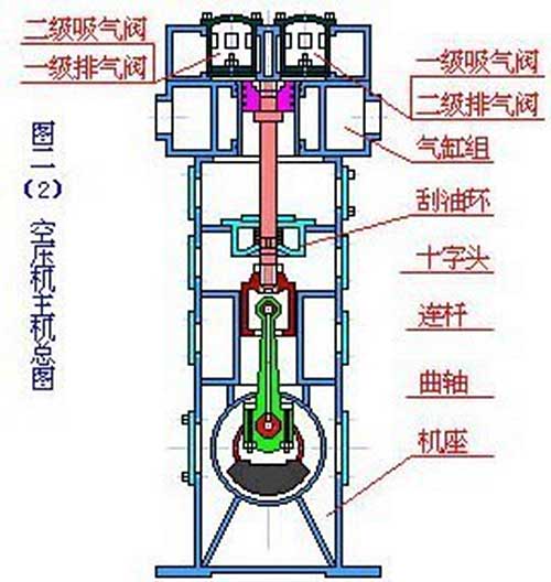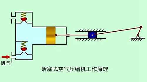 活塞式空氣壓縮機(jī)的工作原理:活塞式空壓機(jī)在氣缸內(nèi)作往復(fù)運(yùn)動的活塞向右移動時(shí),氣缸內(nèi)活塞左腔的壓力低于大氣壓力,吸氣閥開啟,外界空氣吸入缸內(nèi),這個(gè)過程稱為壓縮過程。當(dāng)缸內(nèi)壓力高于輸出空氣管道內(nèi)壓力后,排氣閥打開。活塞的往復(fù)運(yùn)動是由電動機(jī)帶動的曲柄滑塊機(jī)構(gòu)形成的。曲柄的旋運(yùn)動轉(zhuǎn)換為滑動--活塞的往復(fù)運(yùn)動。這種結(jié)構(gòu)的壓縮機(jī)在排氣過程結(jié)束時(shí)總有剩余容積存在。在下一次吸氣時(shí),剩余容積內(nèi)的壓縮空氣會膨脹,從而減少了吸入的空氣量,降低了效率,增加了壓縮功。